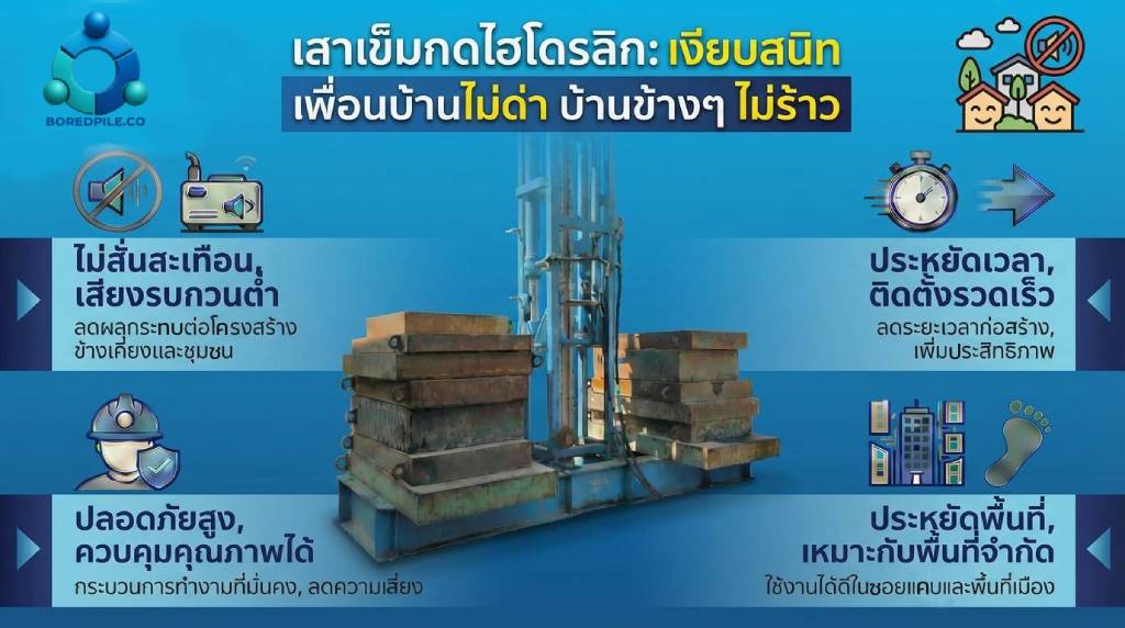 เรามีทีมวิศวกร บุคคลากรที่มีความสามารถเชี่ยวชาญและชำนาญเกี่ยวกับเสาเข็มเจาะ มีประสบการณ์ในการทำงานเฉพาะด้าน ผ่านการอบรมและการทำงานจริง ปฏิบัติงานอย่างถูกต้องตามหลัก ทำให้งานเรามีคุณภาพ ตรงตามความต้องการ และส่งมอบงานได้ตรงตามกำหนด เรายินดีให้คำปรึกษาในทุกๆด้านเกี่ยวกับเสาเข็มเจาะ เสาเข็มกด ไม่โครไพล์แบบกดไฮดรอลิค สอบถามโทร : 086-610-6000